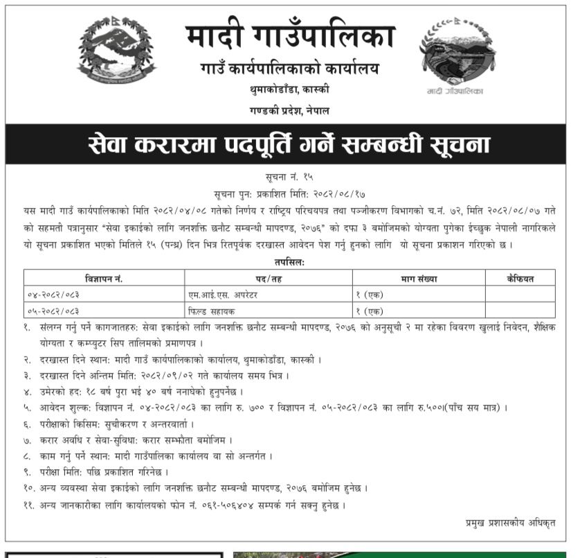 Home » सेवा करारमा पदपूर्ति गर्ने सम्बन्धी सूचना।